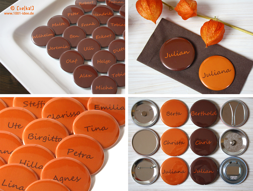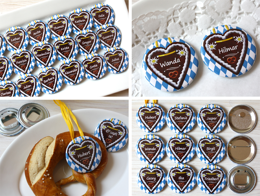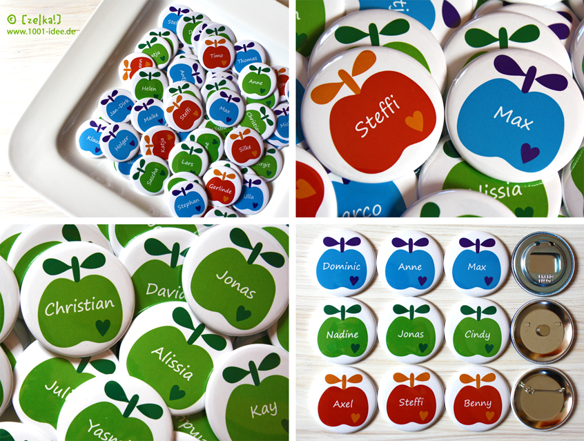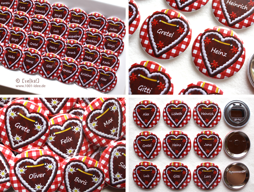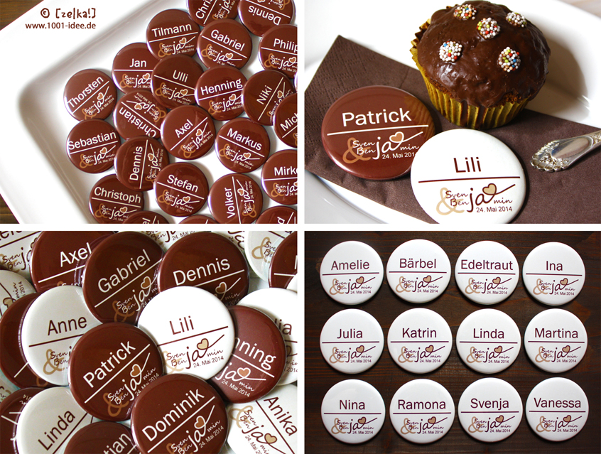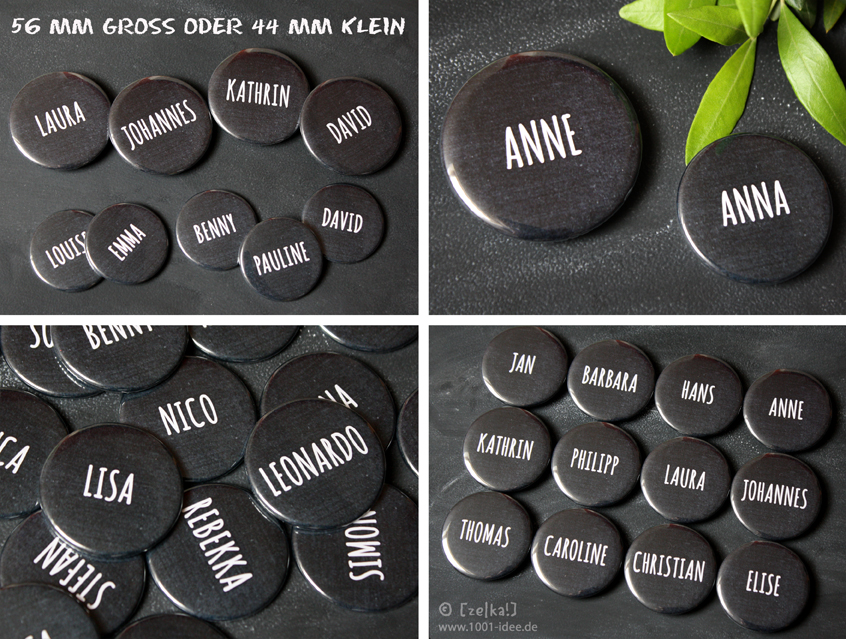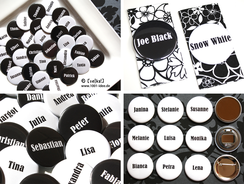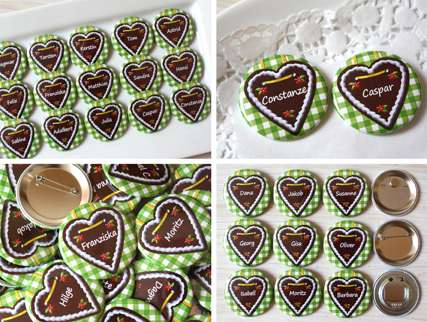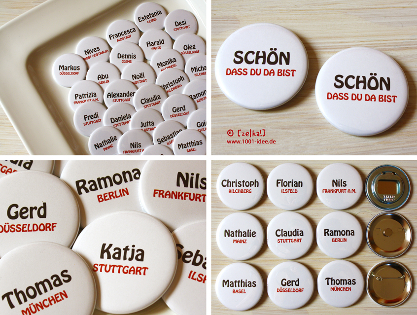 Gäste die Buttons anstecken. Besonders gut mit dem Nadel- oder