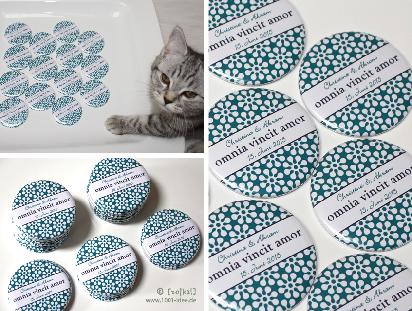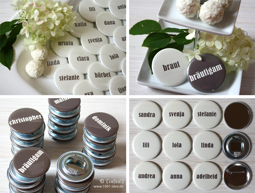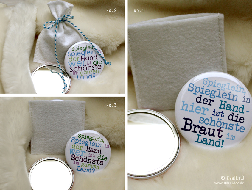 Buttons rund um die Hochzeit. Mit dem kleinen Spiegel sind die