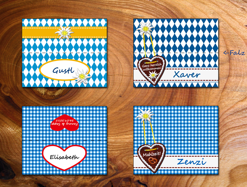 Menükarten, Give-Aways, Tischnummer, Gästebuch etc.