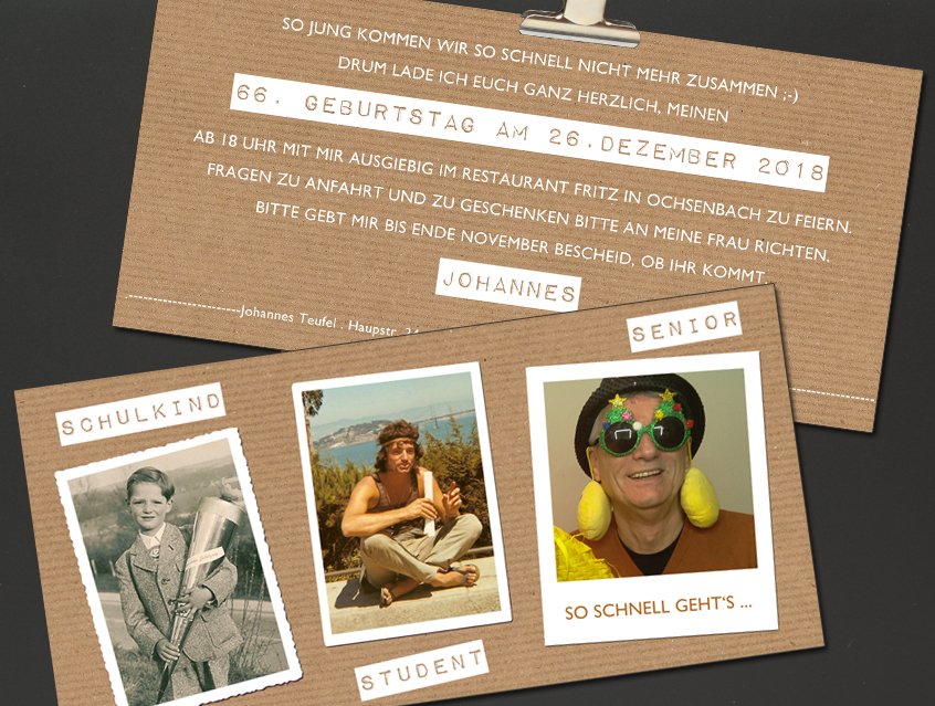 Entweder als 2-seitige Karte oder mit besonders viel Platz und sehr